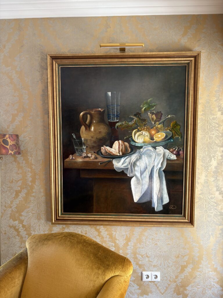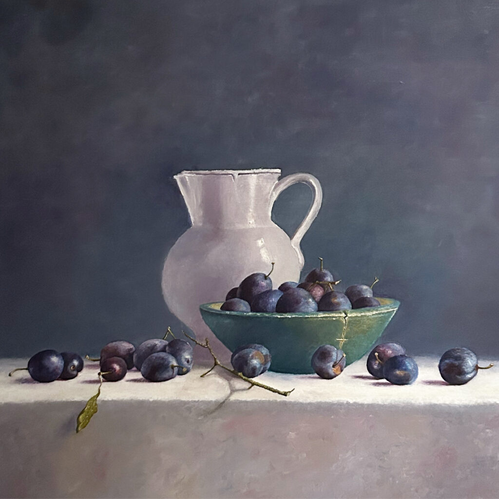 Copy Henk Helmantel – Stilleven met pruimen en Spaanse kan – oil on panel, 80 x 85